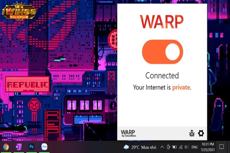 Bước 4: Để có thể truy cập vào Internet nhanh hơn, bạn chỉ cần gạt công tắt bật WARP lên là được. Biểu tượng ứng dụng WARP sẽ được thu nhỏ trên thanh công cụ Taskbar. Người dùng có cơ hội được truy cập mọi lúc, mọi nơi.